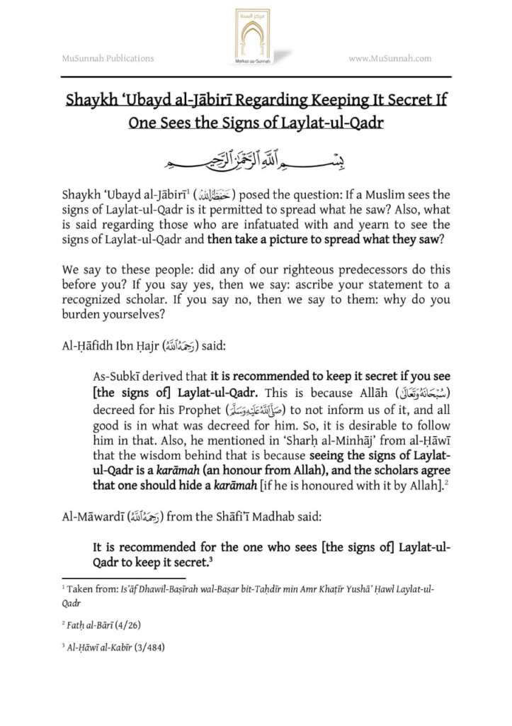 (Source: Isʿāf Dhawil-Baṣīrah wal-Baṣar bit-Taḥdhīr min Amr Khaṭīr Yushāʿ Ḥawl Laylat ul-Qadr)